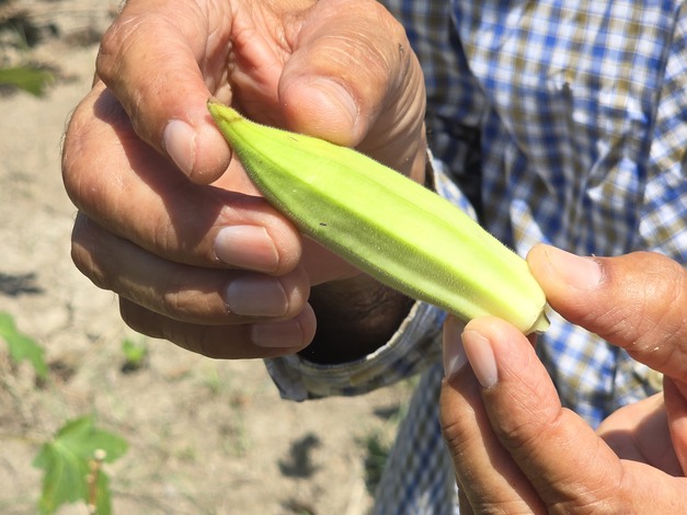 Uno de los cultivos estrella es la okra. "Es muy apreciada en Países Bajos, Alemania y Reino Unido", afirma Bhiesnoe. "¿Sabías que esa costra marrón en algunas hamburguesas de comida rápida contiene polvo de okra?" Cultivan esta verdura en 20 hectáreas, lo cual no es poco. "Para sembrar solo 10 hectáreas, ocho personas trabajamos toda una semana. Por eso, estamos viendo cómo mecanizar el proceso". Las semillas vienen de África vía Países Bajos, y la cosecha inicia dos meses después de la siembra, prolongándose hasta nueve meses.