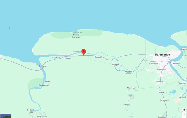 © Google mapsLa empresa Gopex está situada a una hora de Paramaribo, la capital de Surinam.