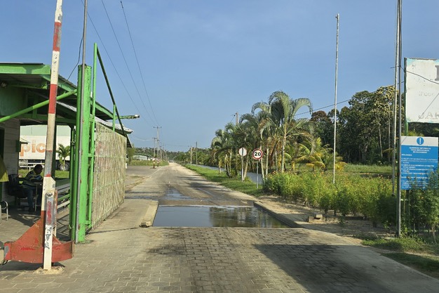 Todos los vehículos deben pasar por una tina de desinfección en la entrada a la finca para prevenir la propagación de enfermedades.