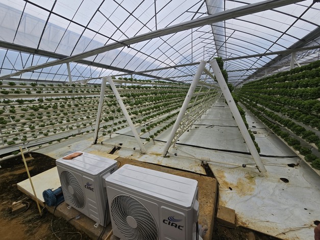 © Pieter Boekhout | FreshPlaza.esEn el nuevo invernadero, el sistema de pirámides será reemplazado por canaletas de cultivo; en primer plano los enfriadores de agua.