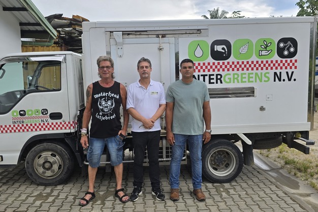 © Pieter Boekhout | FreshPlaza.esEn la imagen: Bas Slagter, jubilado y exproductor holandés de coliflor, que visita regularmente Surinam a través de la fundación PUM para asesorar al sector agrícola; Marnix Maenhoudt, fundador y propietario de Intergreens NV; y Kenny van Dijk, empresario surinamés del sector agro y maquinaria agrícola, con el camión refrigerado al fondo con el que se hacen las entregas.