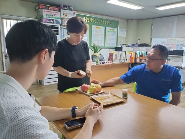 Cada año, durante sus visitas, el equipo de LytoFresh celebra la cosecha de manzanas con los productores de toda Corea. Durante la visita de este año a Geochang, se vio que las manzanas se desarrollaban bien, y se cosecharon antes que en otras regiones. En la Asociación de Productores de Manzanas y Uvas de Geochang Gamaksan, el equipo probó manzanas recién cortadas con un aroma natural a miel. Las visitas posteriores a campos más pequeños también les proporcionaron manzanas recién recolectadas, señal de que había otra temporada prometedora por delante.
