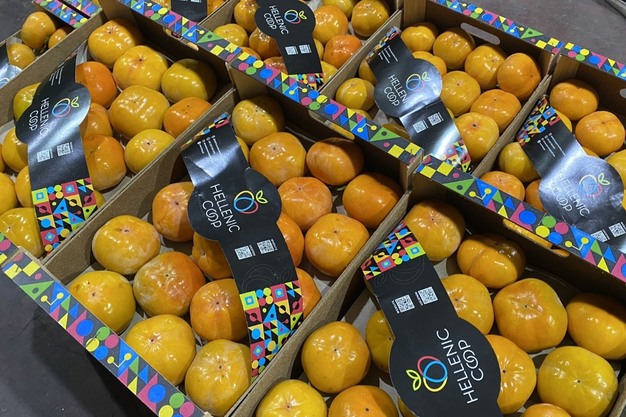 El kaki es uno de los productos de la cooperativa Hellenic Coop, con sede en emacia. "Este año esperamos una producción de 700-800 toneladas, de las que aproximadamente el 70% serán de Jiro", afirma el presidente de la cooperativa, Andrianos Kroubouzos. Y añade: "Este año, la producción ha bajado un 30% debido a las heladas que afectaron a los cultivos durante la fase de floración y a la falta de agua que sufrieron varias regiones durante el verano. Sin embargo, se espera que los tamaños de los frutos sean normales, es decir, de 80-140 gramos para Jiro y de 120-180 gramos para Rojo Brillante".