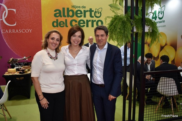 © Joel Pitarch | FreshPlaza.esMaribel, Martina y Enrique exponiendo en Fruit Attraction 2025.