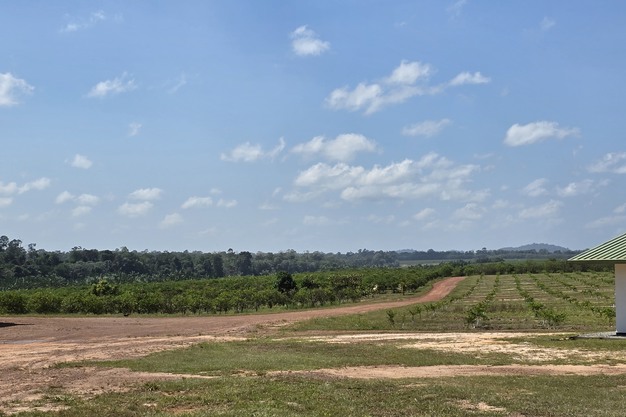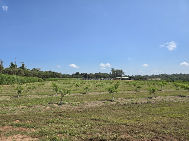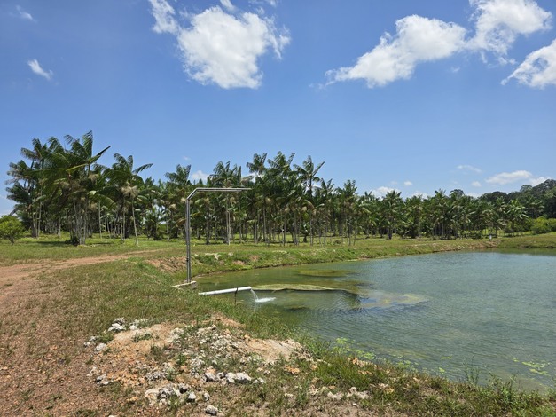 Actualmente hay 325 hectáreas de cítricos, con planes para intentar llegar a 500 hectáreas. Eso implica deforestación controlada. "Dejamos deliberadamente zonas de bosque sin tocar. Con drones y tecnología láser se analiza el suelo para saber exactamente dónde tiene sentido deforestar y dónde no. Talar en zonas de pantanos no tiene sentido". Se han establecido doce estanques piscícolas en marismas que se talaron por error. Los peces no solo son una fuente adicional de ingresos, sino que también contribuyen a mejorar la sostenibilidad del ecosistema de la explotación. "Cuando limpias el fondo del estanque, se obtiene un abono perfecto para los árboles", comenta el Dr. K.