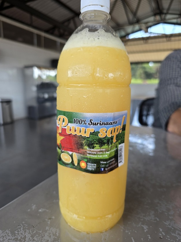Hace quince años, en un terreno cedido por el Estado para uso agrícola, se plantaron naranjos de la variedad Pera Rio, una naranja brasileña para zumo con un porcentaje de zumo del 53%. "Para no reinventar la rueda, se decidió desde el principio copiar el modelo de cultivo del norte de Brasil, dado que muchas de las condiciones de cultivo, como las horas de sol, la composición del suelo o la pluviosidad son muy parecidas a las de Surinam". Y al igual que en el norte de Brasil, las naranjas no se vuelven anaranjadas, ya que para eso se necesita una diferencia de temperatura de al menos 14 grados entre el día y la noche. "Pero saben igual de bien".