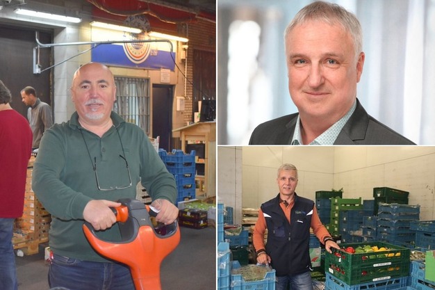 Los protagonistas del mercado mayorista de Colonia. En el sentido de las agujas del reloj: Nevzat Taskiran, codirector gerente del nuevo ABA Frischecentrum; Michael Rieke, portavoz de IG, y Norbert Heep, presidente de IG y director gerente de Früchte Heep.