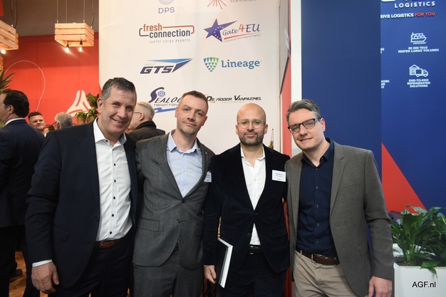 Steve Alaerts (segundo por la izquierda) con Henning Goedecke, Diego Barriga (Foodcareplus) y Jan Zobel (Heuer Logistics) en la pasada Fruit Logistica.