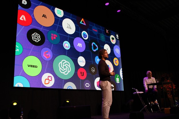 Sonny de Leeuw y Wouter de Vries ofrecieron al público una introducción al mundo de la inteligencia artificial. Con humor, describieron cómo cada ola tecnológica sustituye a algo antiguo —de la máquina de escribir al CD— y cómo la IA se está convirtiendo en la próxima revolución. "Las mayores empresas del mundo ya no ganan dinero con petróleo, sino con datos", declaró Wouter. "Y eso ofrece enormes oportunidades también para la agricultura".