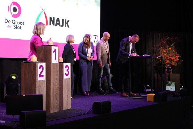 A continuación, Bas van den Hemel y Jeroen Kuin firmaron un acuerdo de cooperación en nombre de De Groot en Slot con la Nederlands Agrarisch Jongeren Kontakt (NAJK), que representa los intereses de los jóvenes agricultores. "El futuro de la producción de cebollas depende no solo de la innovación, sino sobre todo del trabajo de las nuevas generaciones y del intercambio de conocimientos", defendió Bas. "Si seguimos trabajando juntos, podremos continuar avanzando al menos durante otros 70 años".