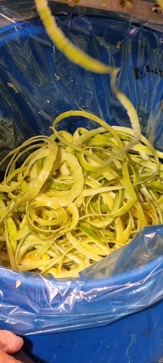 "La línea, que es una de las más completas (a menudo es el propio cliente el que produce el limón) consta de una cepilladora, que tiene la función de eliminar los cuerpos extraños del exterior de la fruta, cintas de carrusel y la peladora PL6, que también tiene 2, 4 y 8 cabezales. La peladora", explica el experto del sector, "puede alcanzar unos 60 frutos por minuto y el calibre de las cáscaras (que luego se infusionarán en alcohol) varía (de 1 a 6 mm), en función de las necesidades. La máquina se alimenta manualmente".