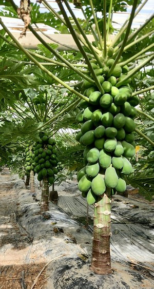 "La papaya se adapta bastante bien a los invernaderos de raspa y amagado típicos de esta zona, pero hay que buscar la variedad correcta y tener en cuenta la fecha de siembra; eso es importantísimo", explica, "ya que a diferencia de otros cultivos subtropicales, la papaya tolera el calor ambiental, pero su cuajado floral es muy sensible a las altas temperaturas. Por eso la ventilación es clave, al igual que unos niveles altos de humedad", añade.
