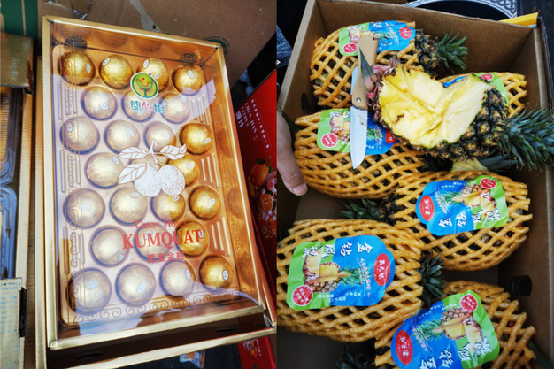 Izquierda: Kumquat Crisp Honey. Derecha: piña Golden Diamond de Hainan.