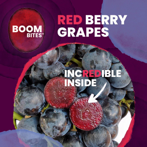 Para crear BoomBites™ Red Berry Grapes, la empresa británica Bloom Fresh (pabellón 8.2, stand A-80) ha cruzado algunas de las mejores uvas de mesa del mundo con uvas de pulpa roja. El desarrollo de esta nueva variedad de fruta, que no solo tiene un sabor excelente, sino que también contiene polifenoles conocidos por sus propiedades antioxidantes y antiinflamatorias, ha llevado más de diez años.