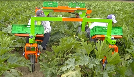 Ecogreen Multis cosechando calabacines, con 2 ubicaciones