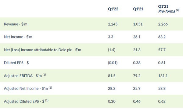 Dole plc ha hecho públicos recientemente sus resultados financieros correspondientes a los tres meses finalizados el 31 de marzo de 2022.