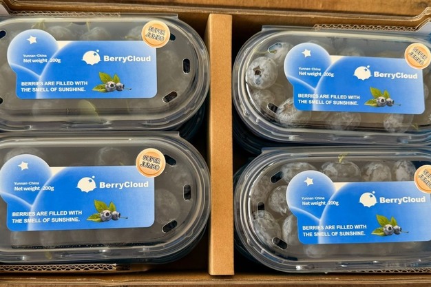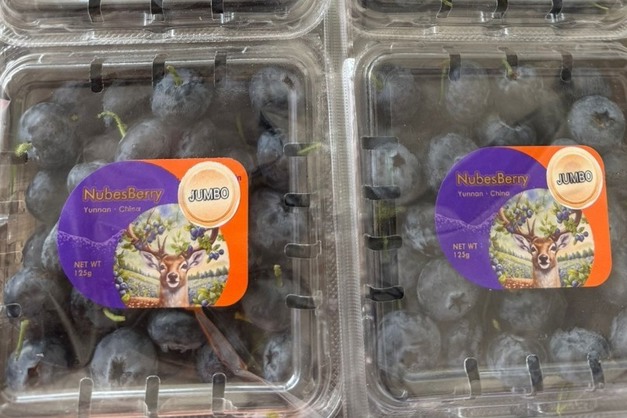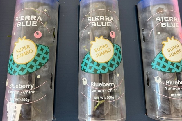 "Los arándanos chinos están disponibles en buenos volúmenes para los calibres 22 mm++ y 24 mm++ Super Jumbo, que están ganando tracción e interés en el mercado. Los arándanos Super Jumbo envasados en tubos de 200 g y en clamshells tienen éxito entre los jóvenes y, por tanto, tienen un precio más alto en las tiendas".