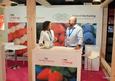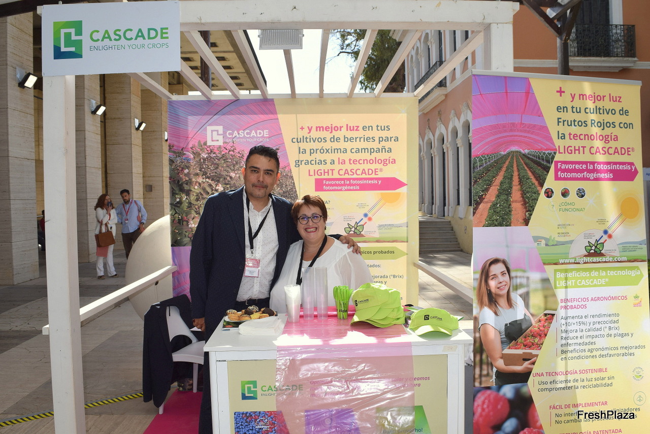 José Góngora y Anne-Sophie Quellec, de Cascade. Como explicó posteriormente José en una de las conferencias técnicas, “nuestras cubiertas consiguen más y mejor luz en los cultivos de berries, aumentando la calidad y el rendimiento, y aportando salud a la planta a través de la luz que recibe”