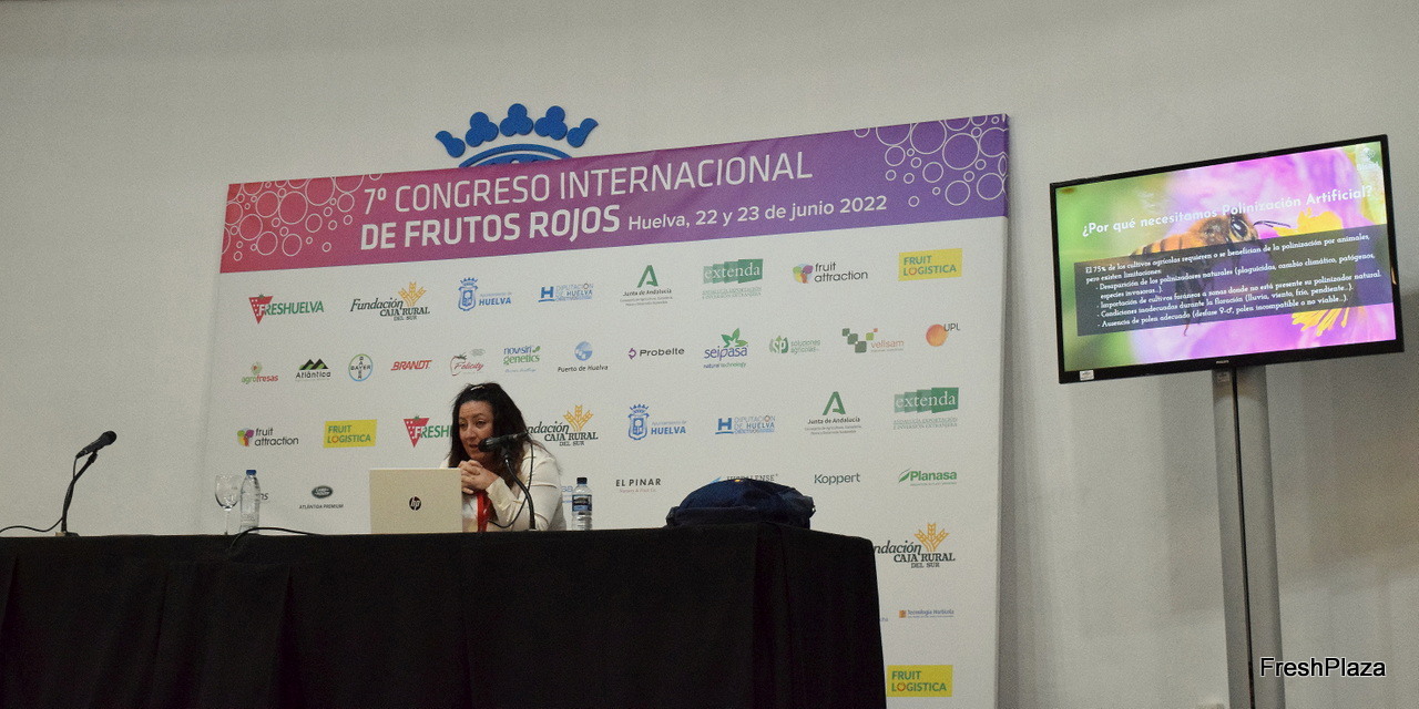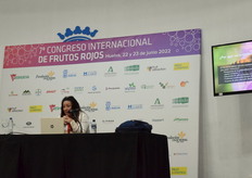 Eva Sánchez, gerente de Bisari, explicó en la sesión de las conferencias técnicas de la primera jornada las aplicaciones de la tecnología electrostática en el cultivo de berries