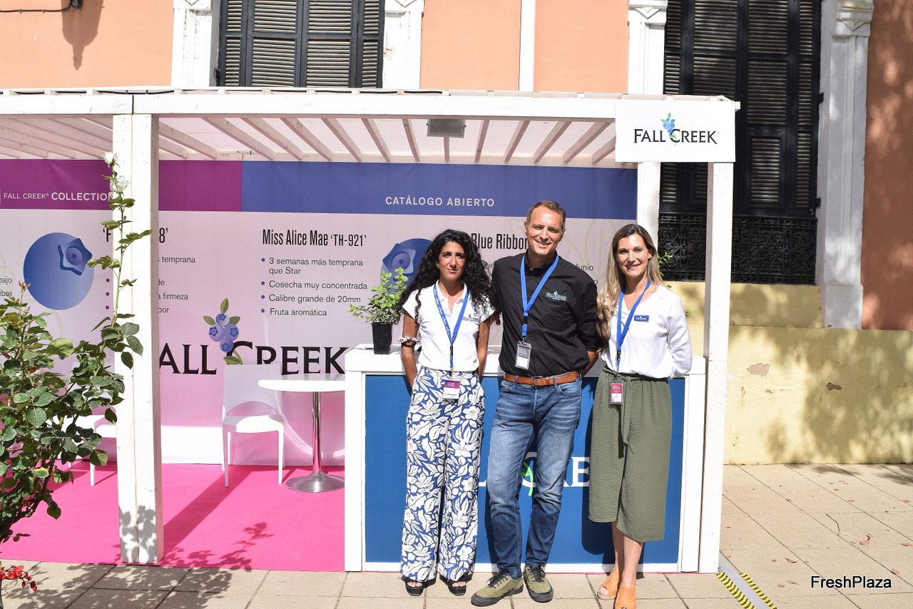 Blanca Galiay, Olivier Coste e Inés Béjar, en el stand de Fall Creek