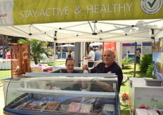 El autor de los exquisitos helados elaborados con las fresas de Emco Cal fue el maestro heladero Ricardo Muñoz, de Cartaya, acompañado de Arantxa Muñoz, la cuarta generación de esta familia de expertos en la fabricación de helados artesanos