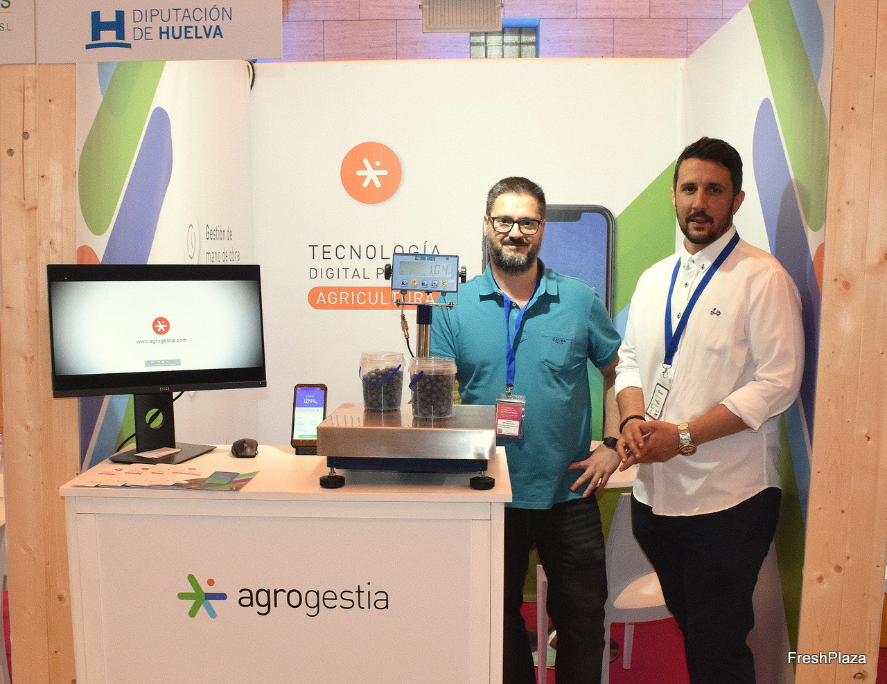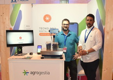 Eduardo Barbadillo y Francisco Márquez, en el stand de Agrogestia, una plataforma de software para la gestión de las explotaciones agrícolas y la optimización de los procesos relacionados con la mano de obra, el control de costes y la recolección