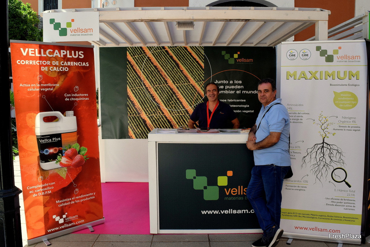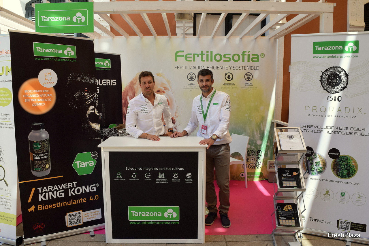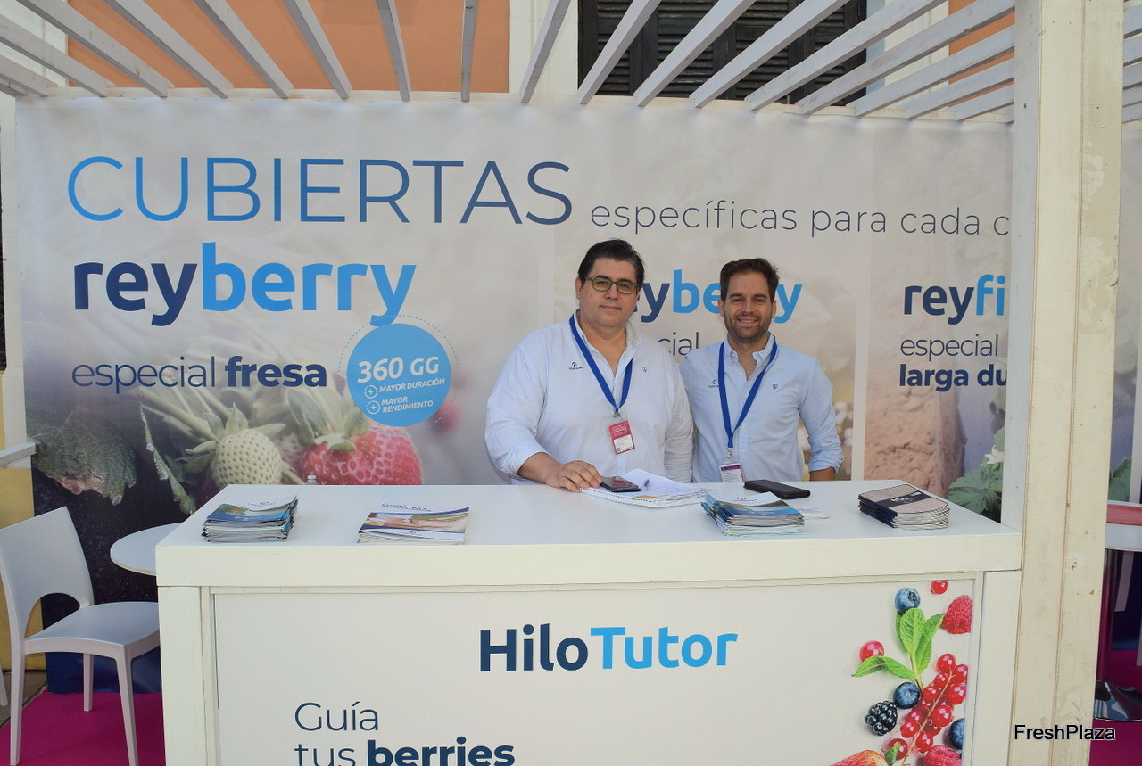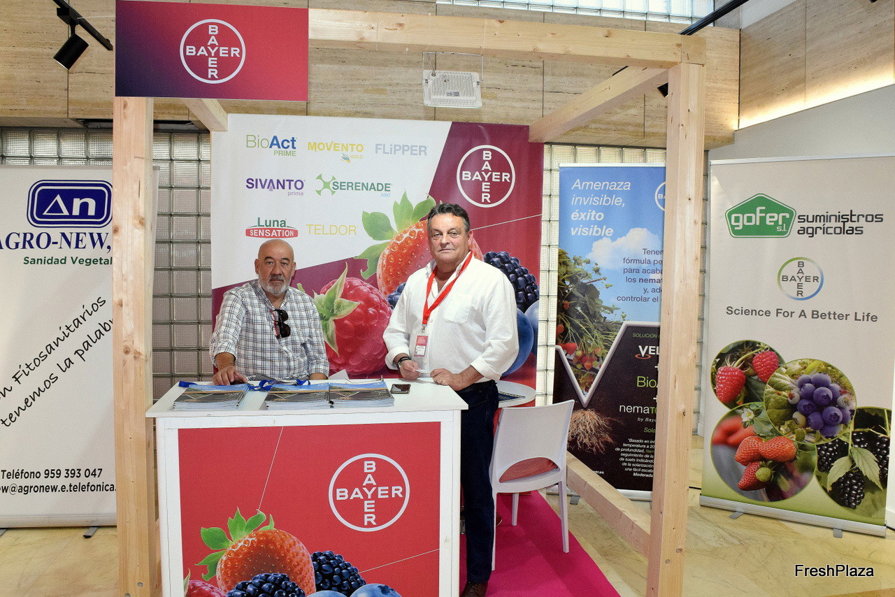 Dionisio Angulo y Luis González, de Bayer, que este año ofrece al sector su solución Vellum para el control de nematodos complementando la estrategia integral de lucha contra este microorganismo perjudicial para el cultivo de berries