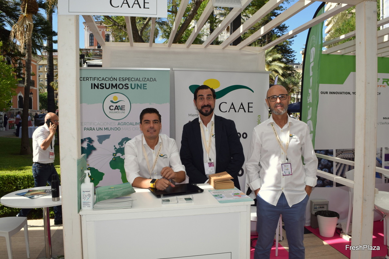 Manuel Sancha, José Manuel Gómez y Juan José Vicente en el stand de CAAE, líder europeo en certificación ecológica