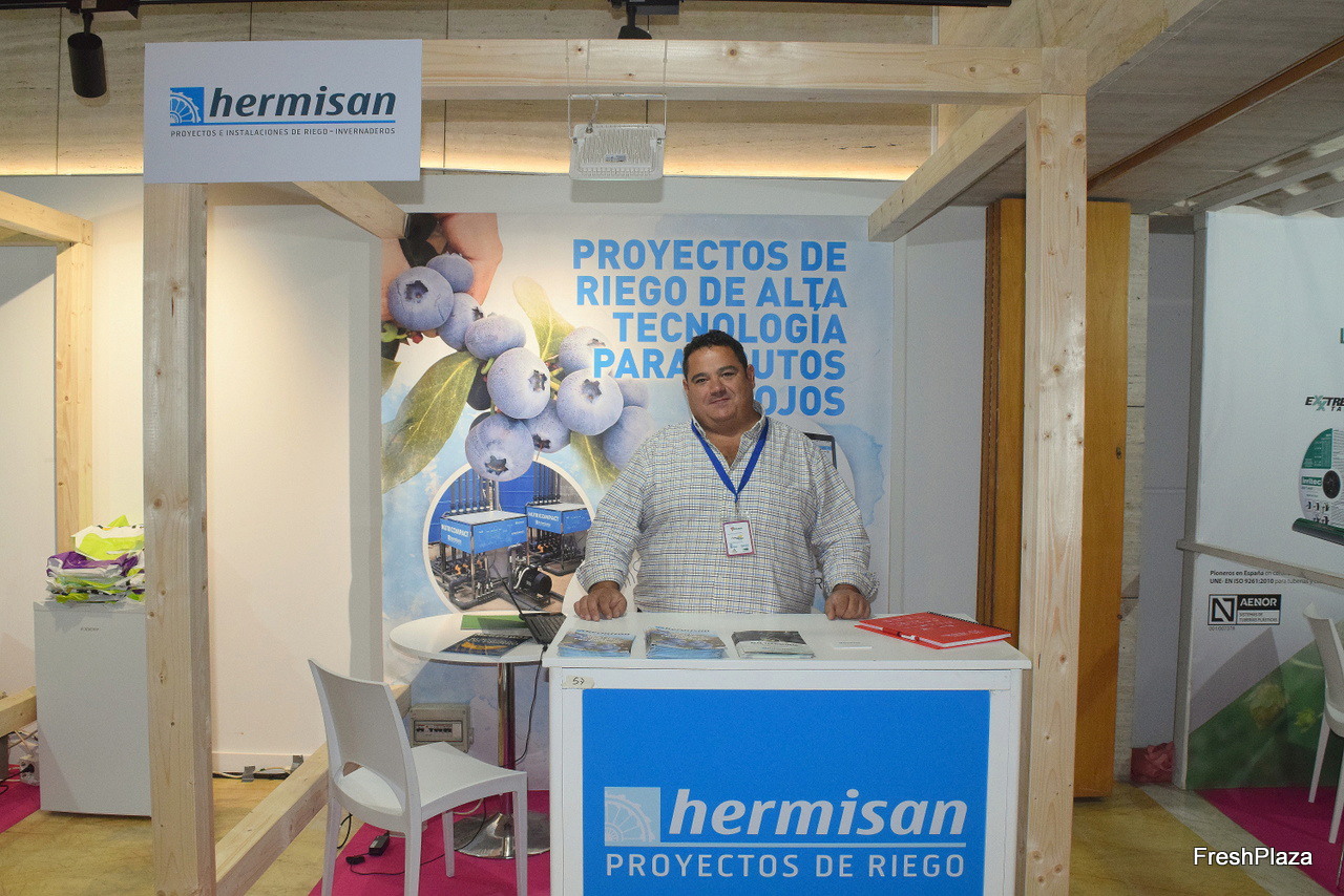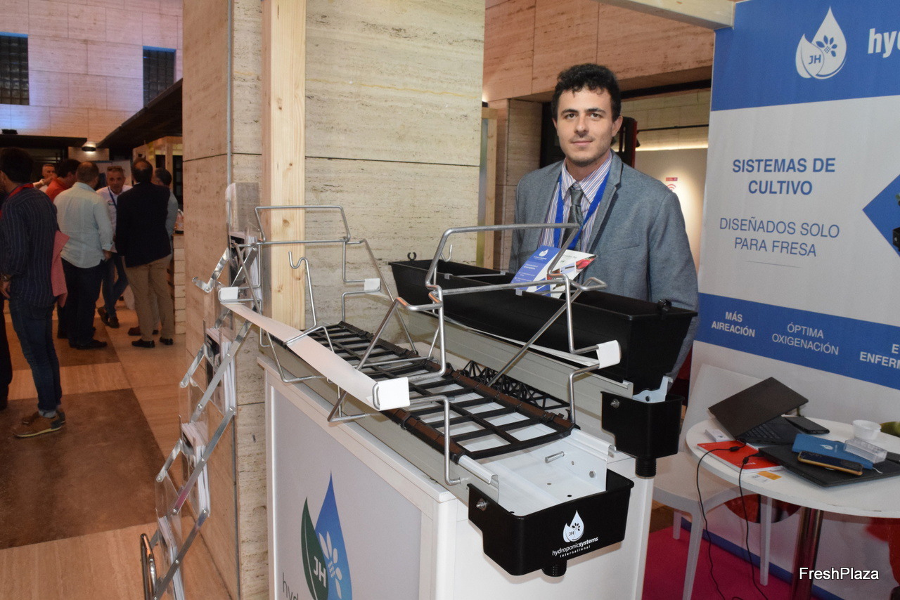 Antonio muestra las soluciones de la compañía para fresas: HS Evolution y HS Evolution Pot
