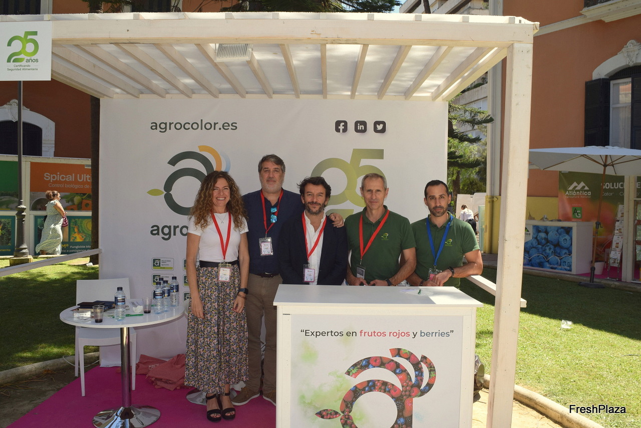 José Manuel Márquez, Ana Rodríguez y Álvaro Cruz, de Cruz Gómez, junto al director de ventas de Biorizon Marcos Santamaría. Cruz Gómez es distribuidor en Huelva de Biorizon, fabricante de soluciones en nutrición basadas en microalgas. Biorizon además es patrocinador del libro “Cultivo, poscosecha, procesado y comercio de berries”, disponible online.