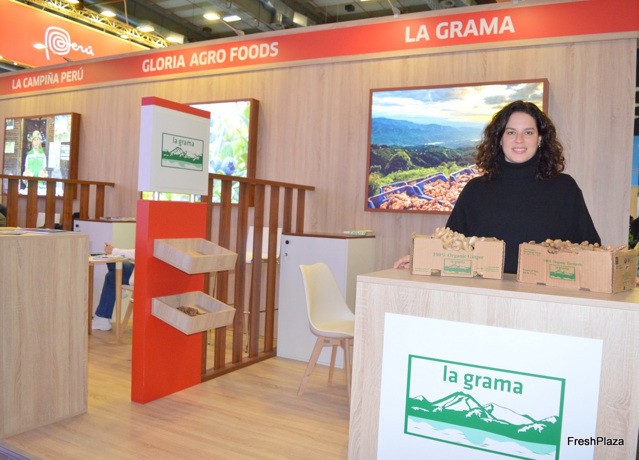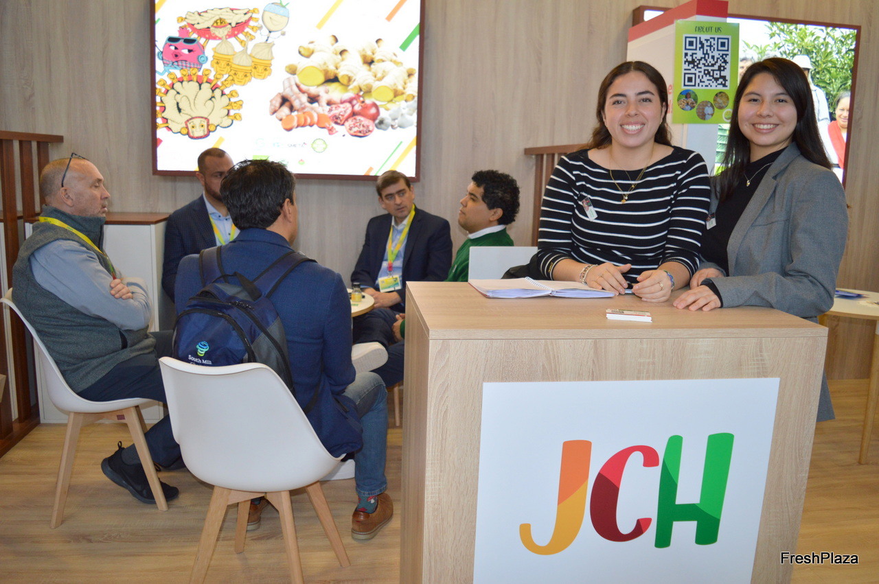 JCH son productores y exportadores de jengibre, ajo, granada y cúrcuma de Perú. Adriana Postigo y Grecia Samanez dieron la bienvenida a los visitantes.