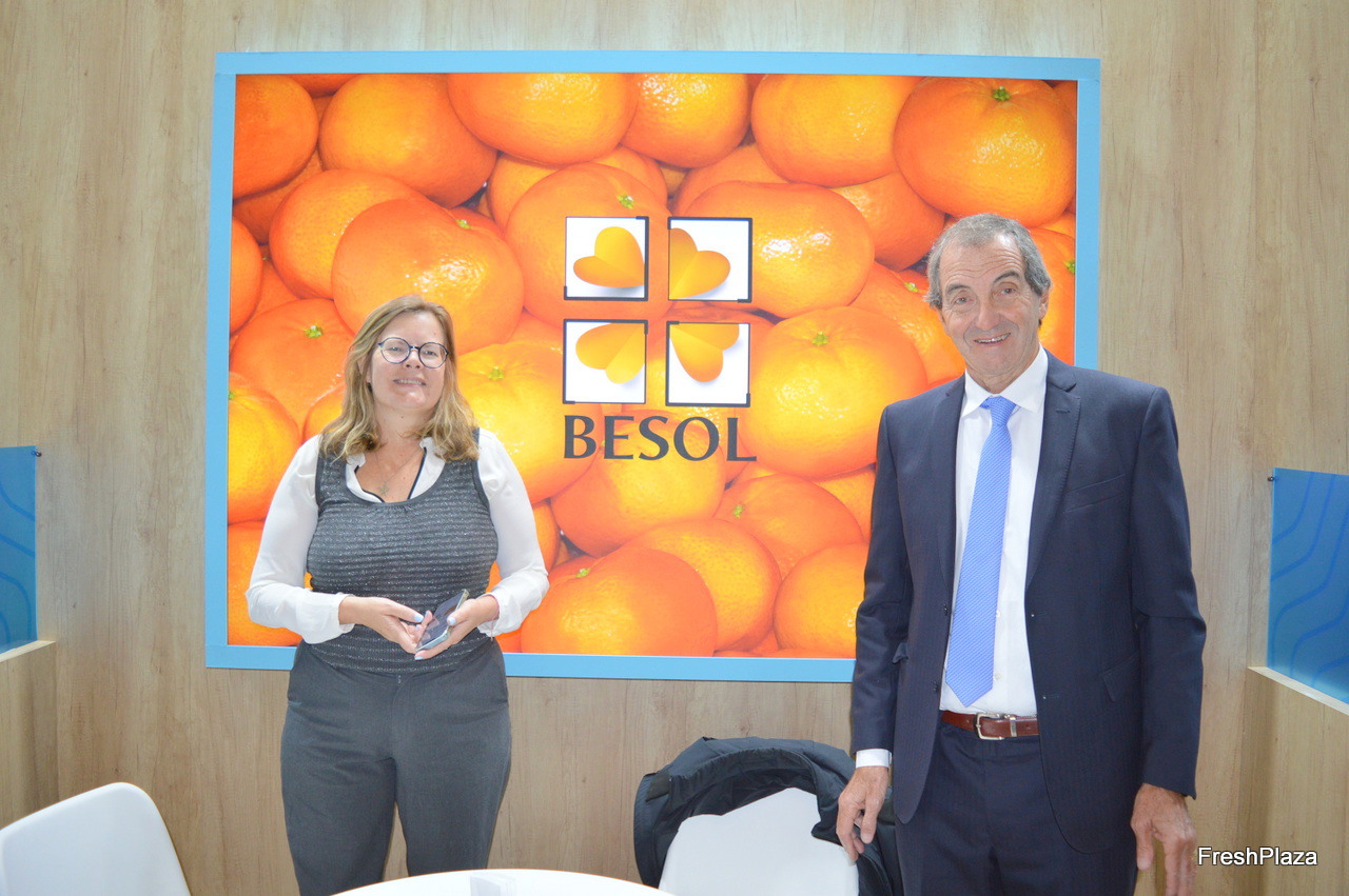 Trébol Pampa, con su marca Besol son productores de mandarinas de Argentina, representados por Patricia Roux y Daniel Bovino en el stand.