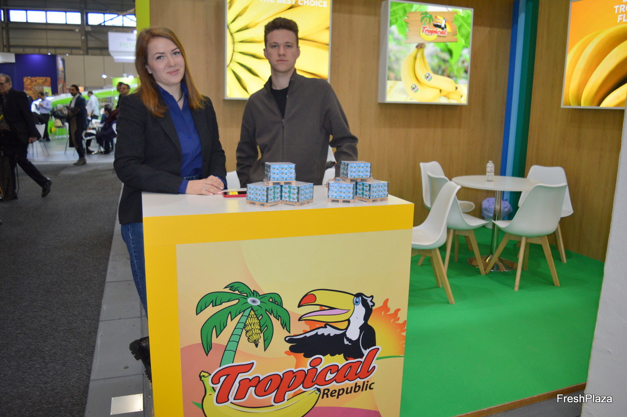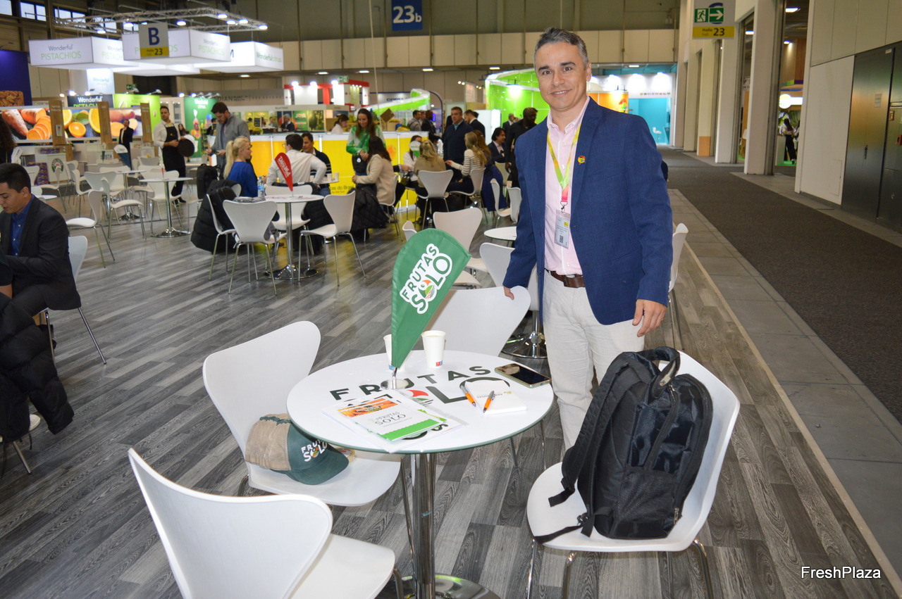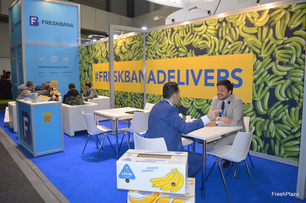 Frutadeli, exportador de bananas de Ecuador. Martín Rivadeneira dice que está contento con el interés de los visitantes en su stand.