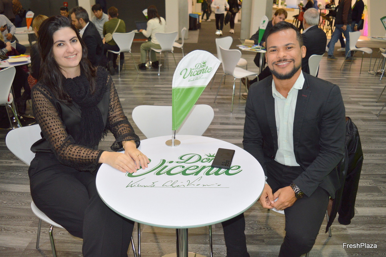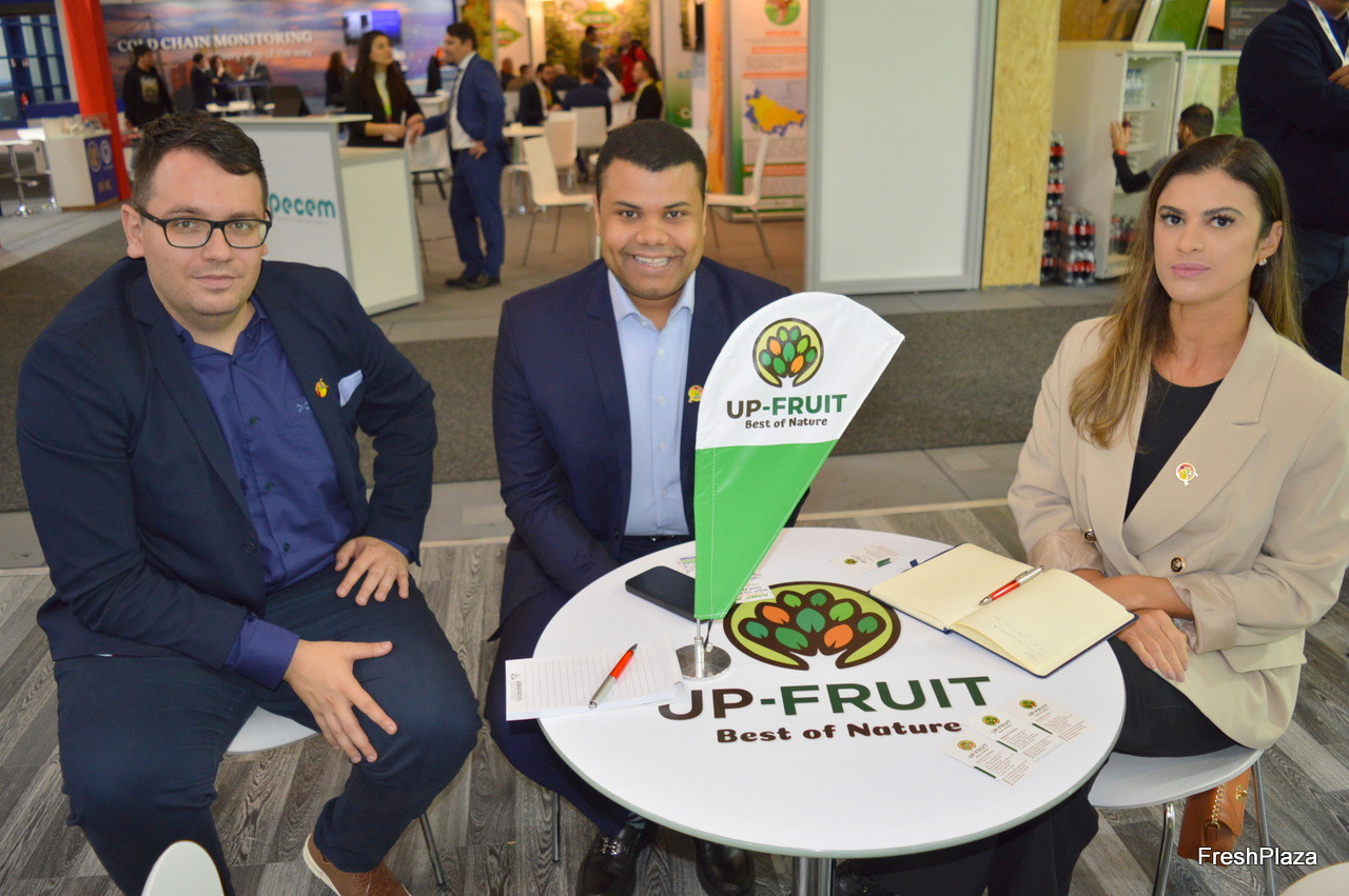 Up-Fruit, de Brasil, reunió a Danilo Piovesan, Matheus Donofrio y Amanda Carlos con sus clientes. Exportan jengibre, limas, batatas y calabazas y compiten con Francia en Europa por las calabazas, lo que se lo pone difícil.