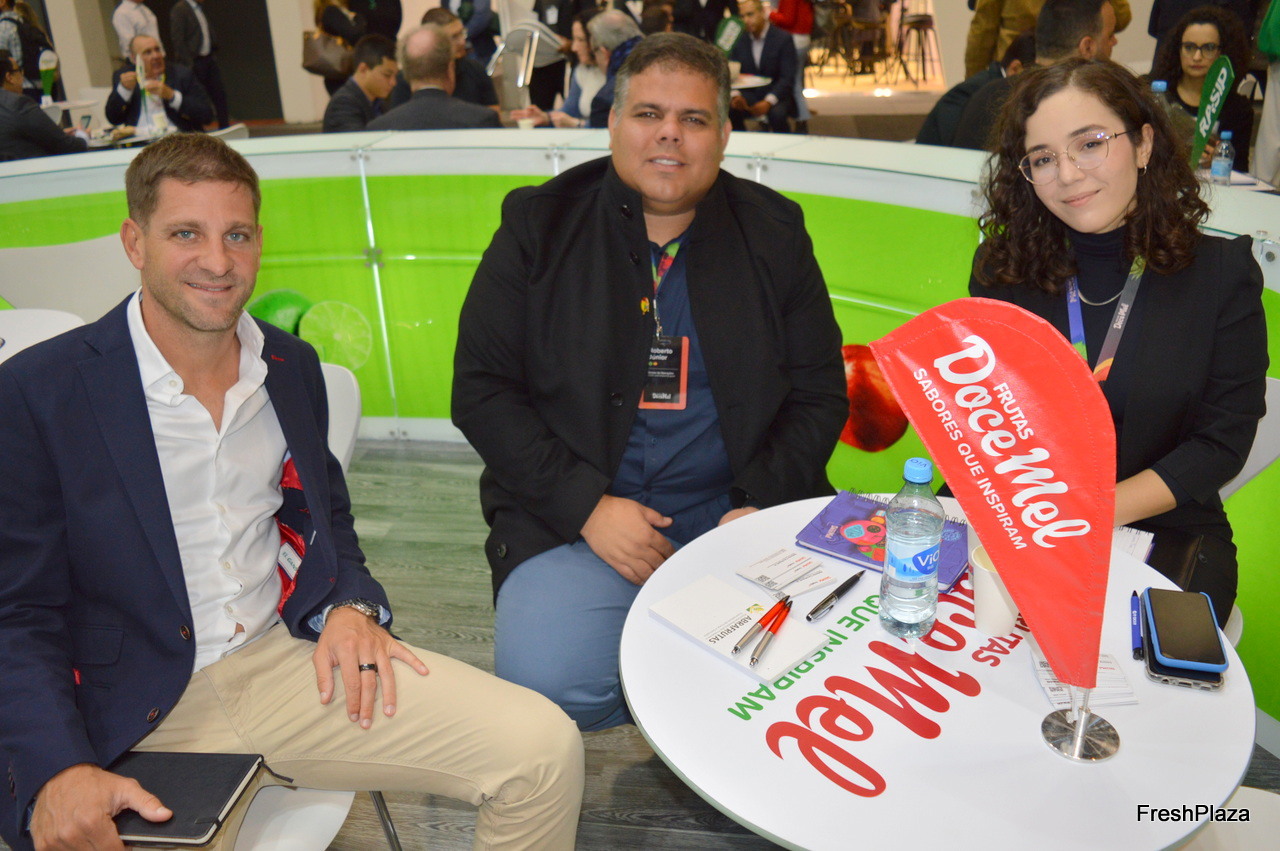 Doce Mel, productores de papaya de Brasil, con el equipo de ventas Juan Pablo Vanzini, Roberto Junior y Leticia Buriti.