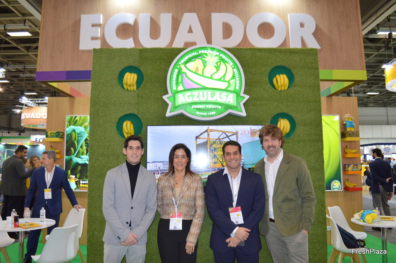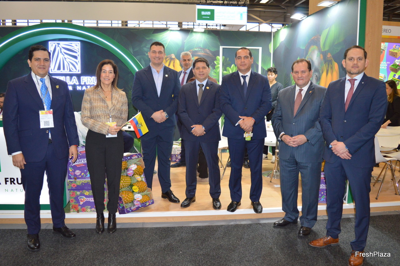 Los líderes de la industria bananera de Ecuador, con su Ministro de Agricultura visitando el pabellón del país el primer día de la feria.