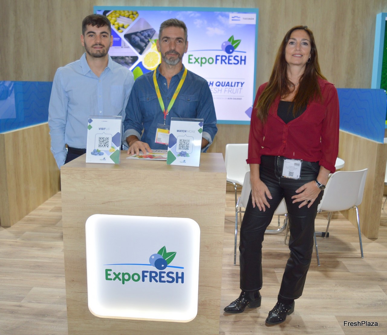 Padre e hijo, de Expofresh, ambos llamados Franco D'Andrea, y Cecilia Domínguez, exportadores de arándanos y limones de Argentina.