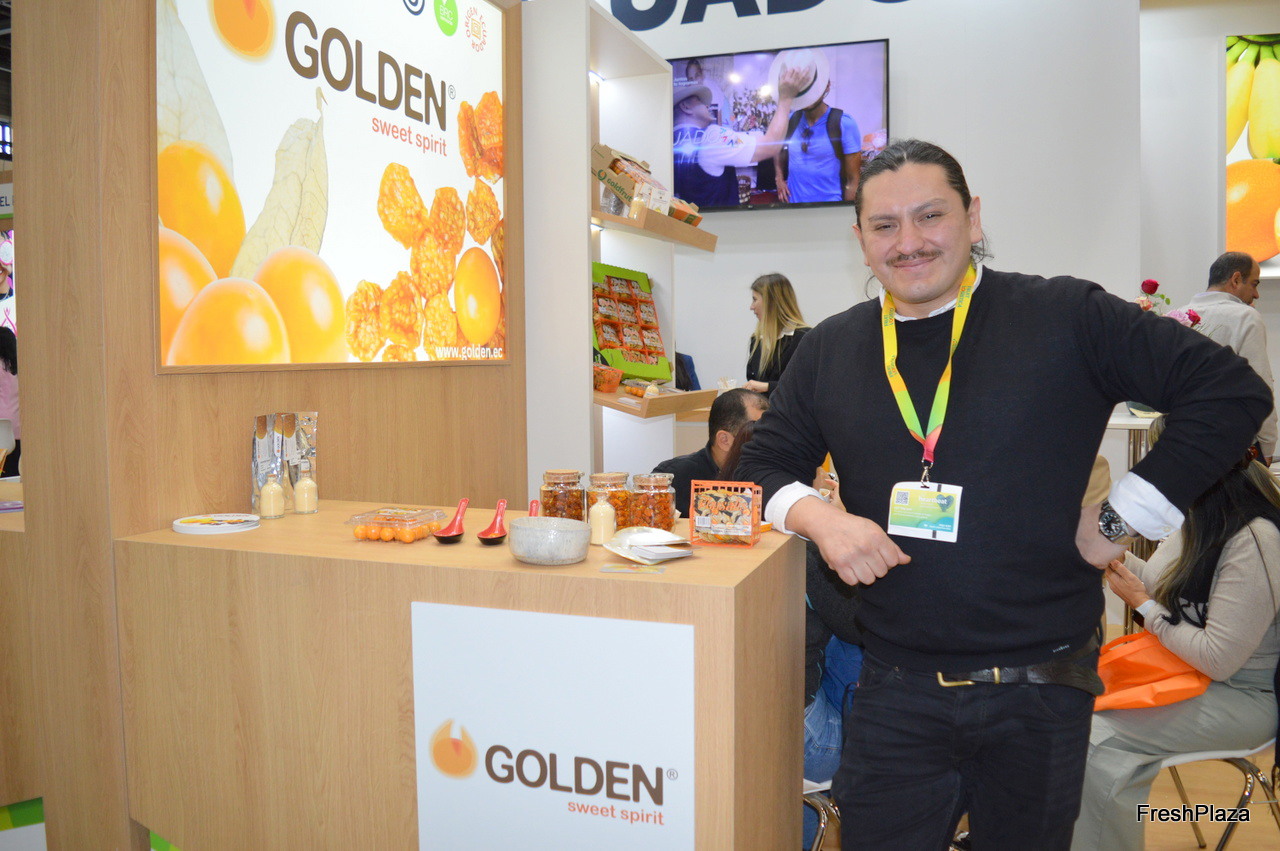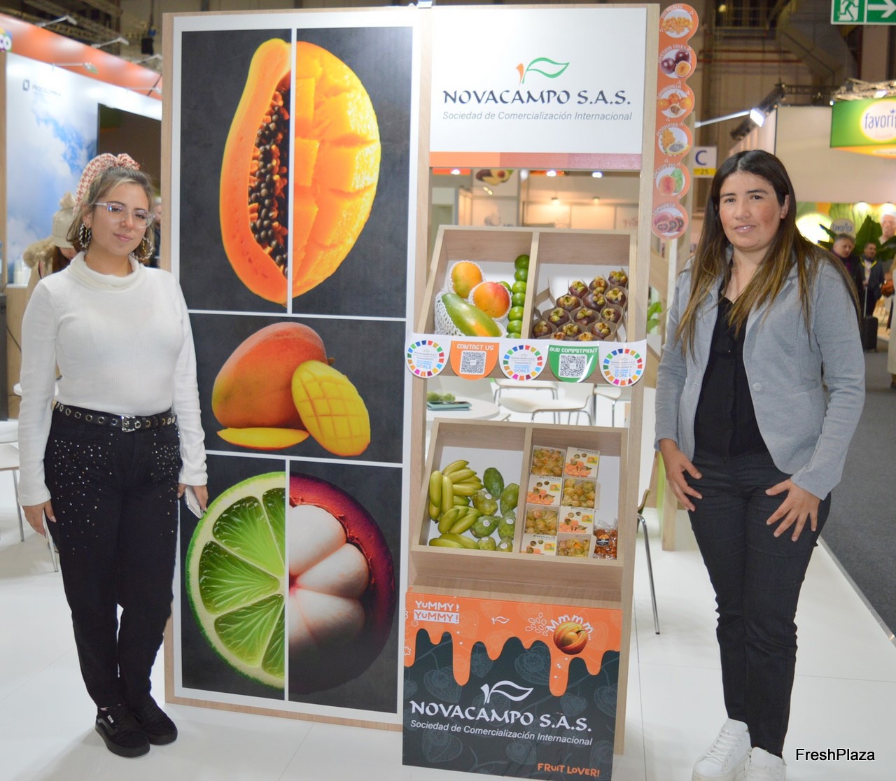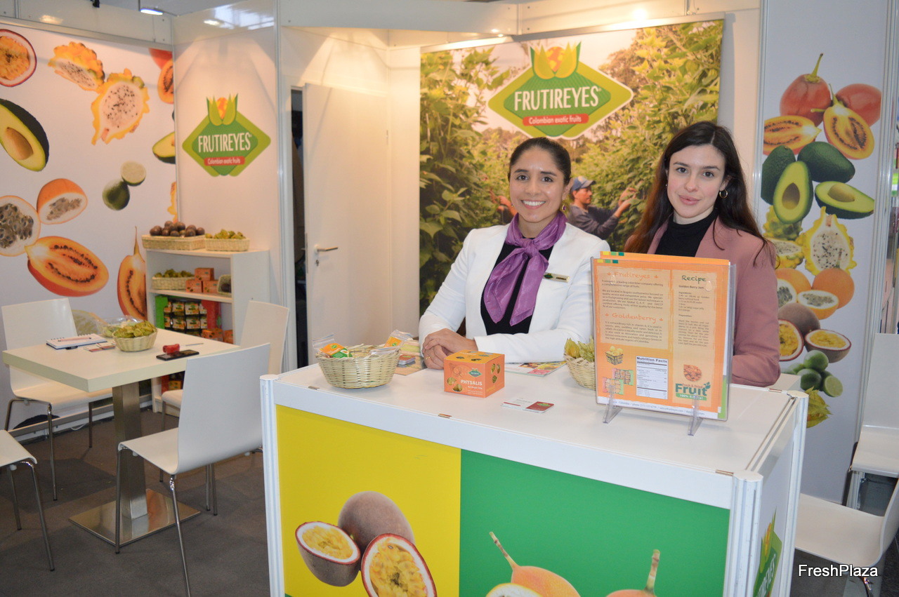 Frutireyes exporta uchuvas y exóticos de Colombia. Andrea Tapias y Elena Olmo atendieron a los visitantes comerciales.