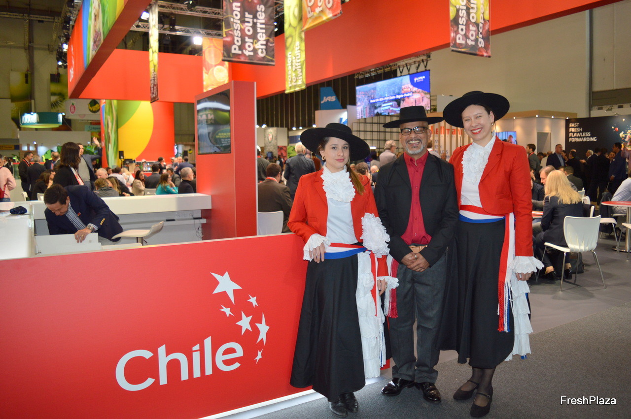 El equipo de Frutas de Chile, con su vestimenta tradicional, aportó un toque de estilo al pabellón campestre.