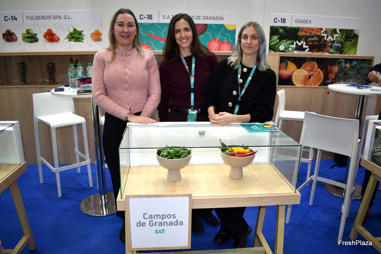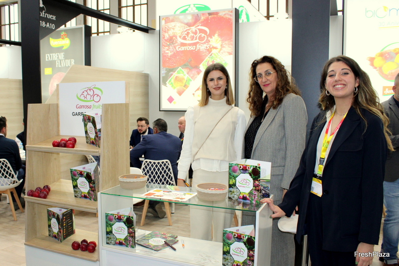 Marta Garrosa, Yolanda Magdaleno y Mariana González, de la empresa extremeña especializada en fruta de hueso, Garrosa Fruits