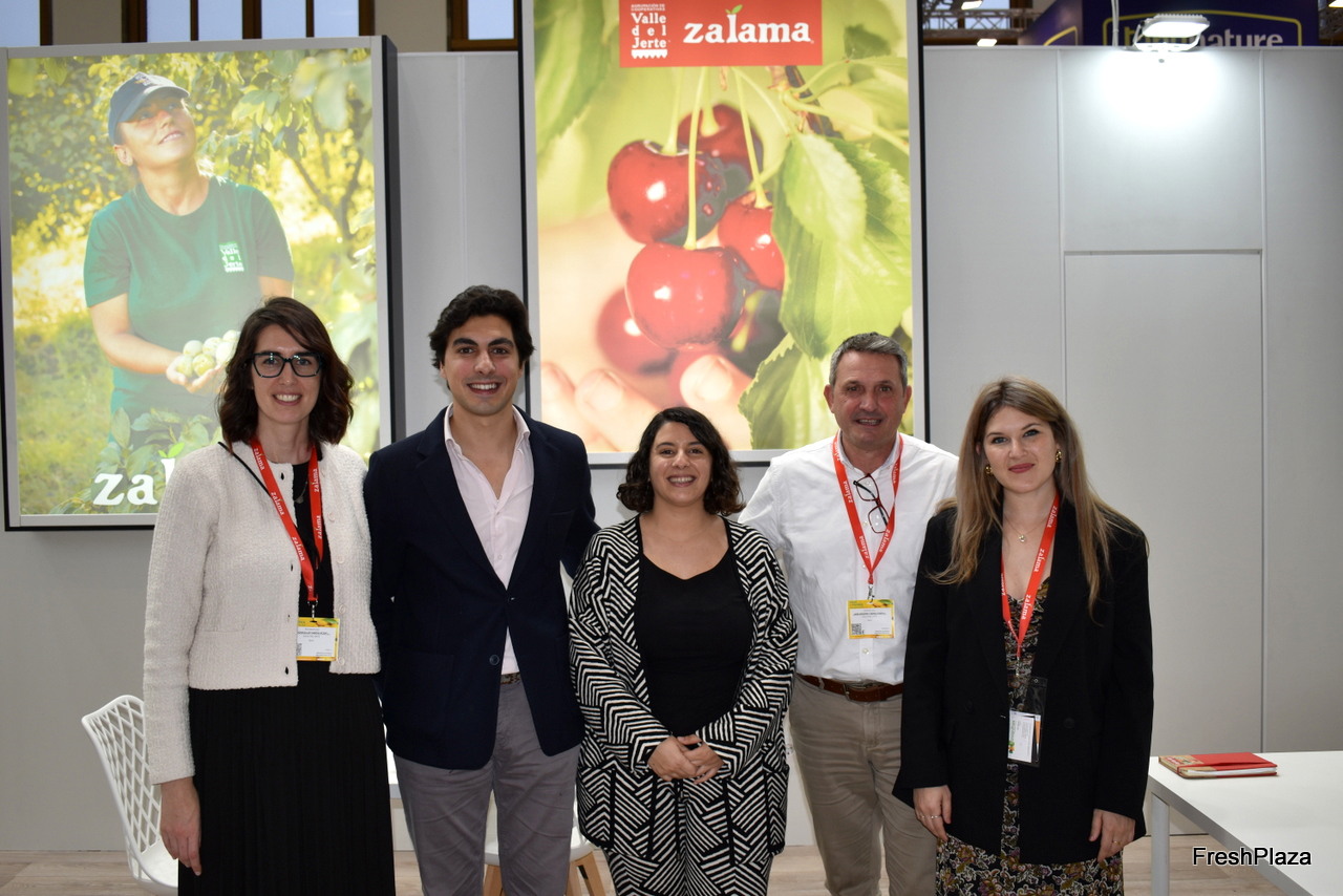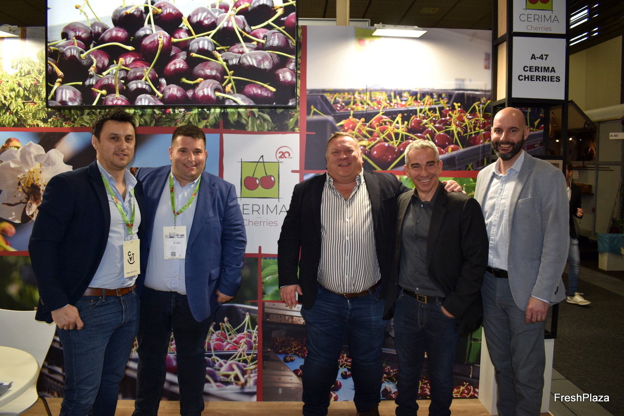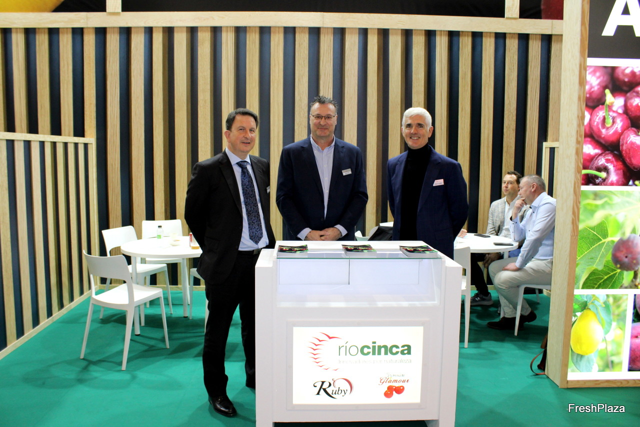 Stand de Río Cinca, que en solo algunas semanas llevará al mercado europeo sus exclusivas primeras cerezas cultivadas en invernaderos