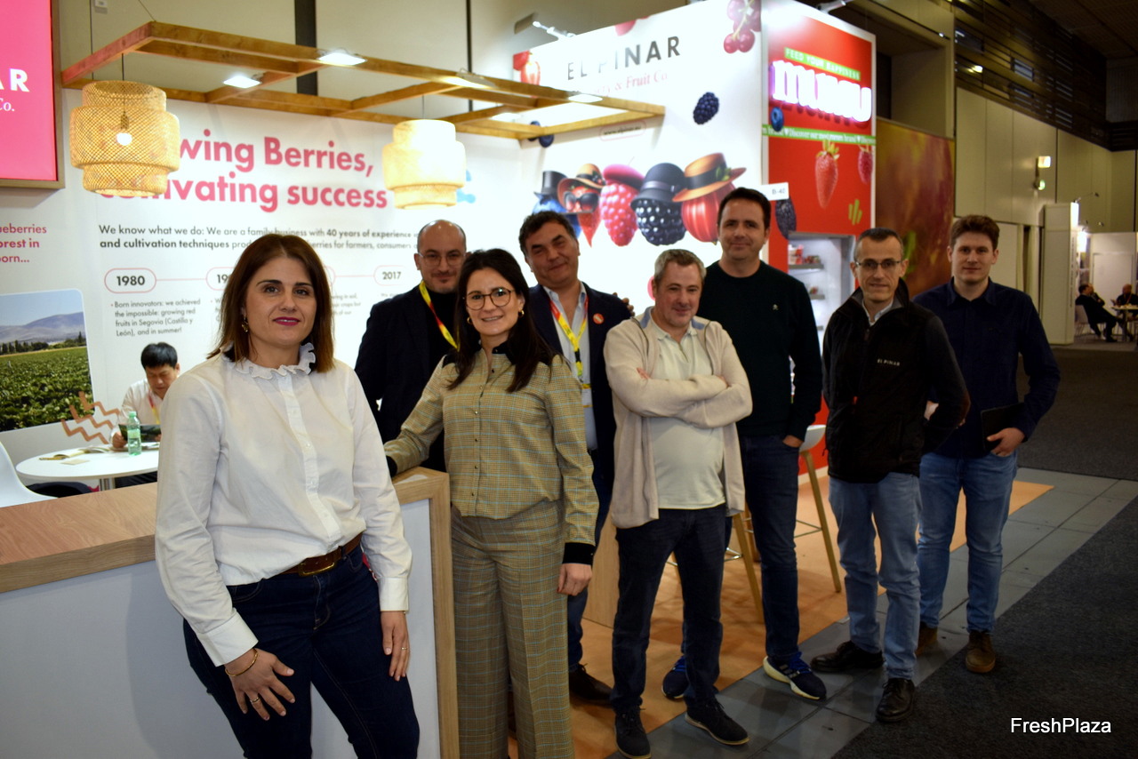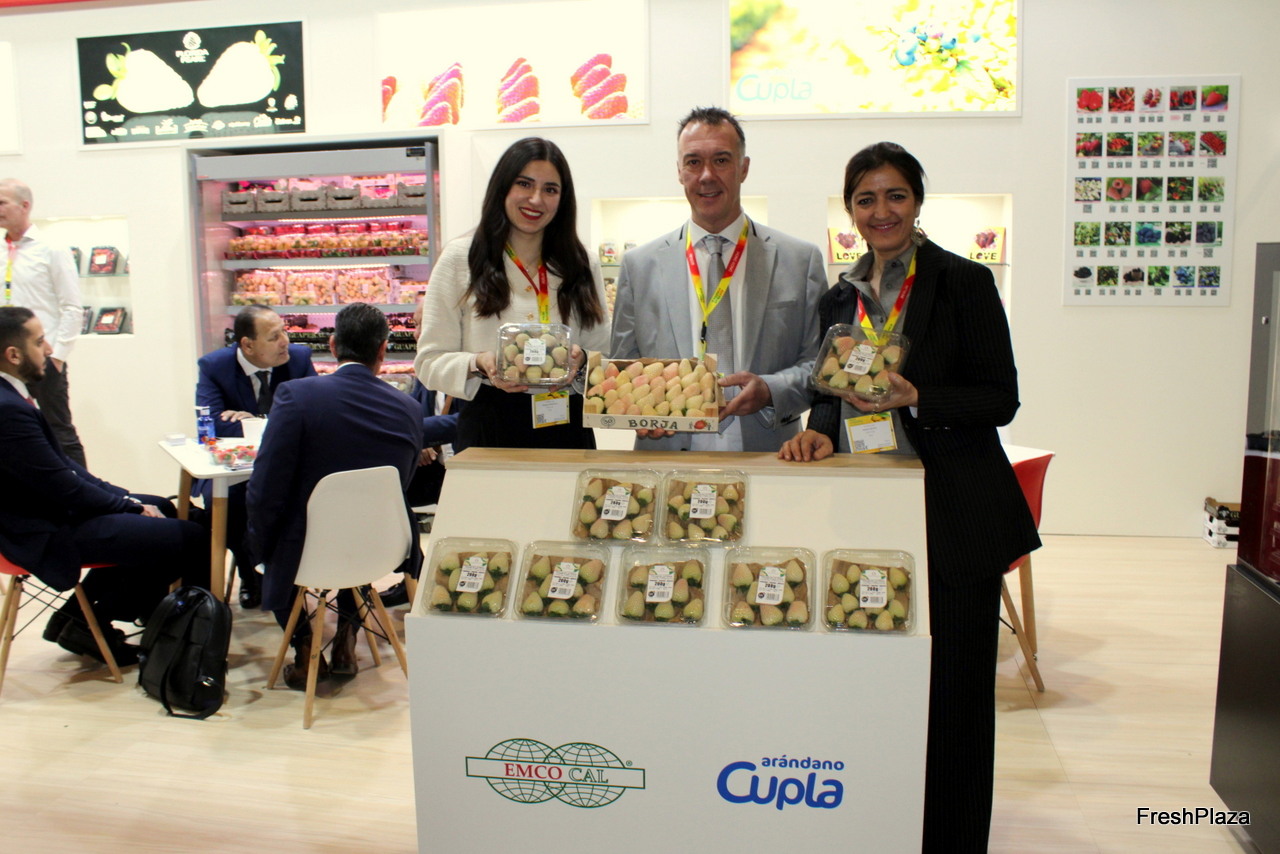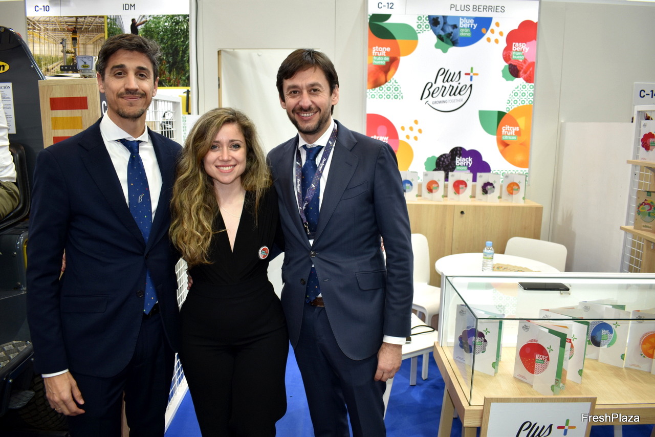 Daniel Blanco, Victoria Martin e Ismael Cabanillas, en el stand de Plus Berries.