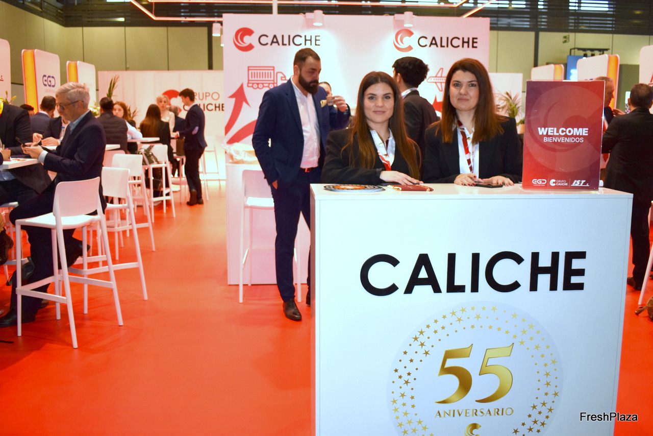 Stand de la compañía de soluciones logísticas Caliche, celebrando su 55 aniversario.