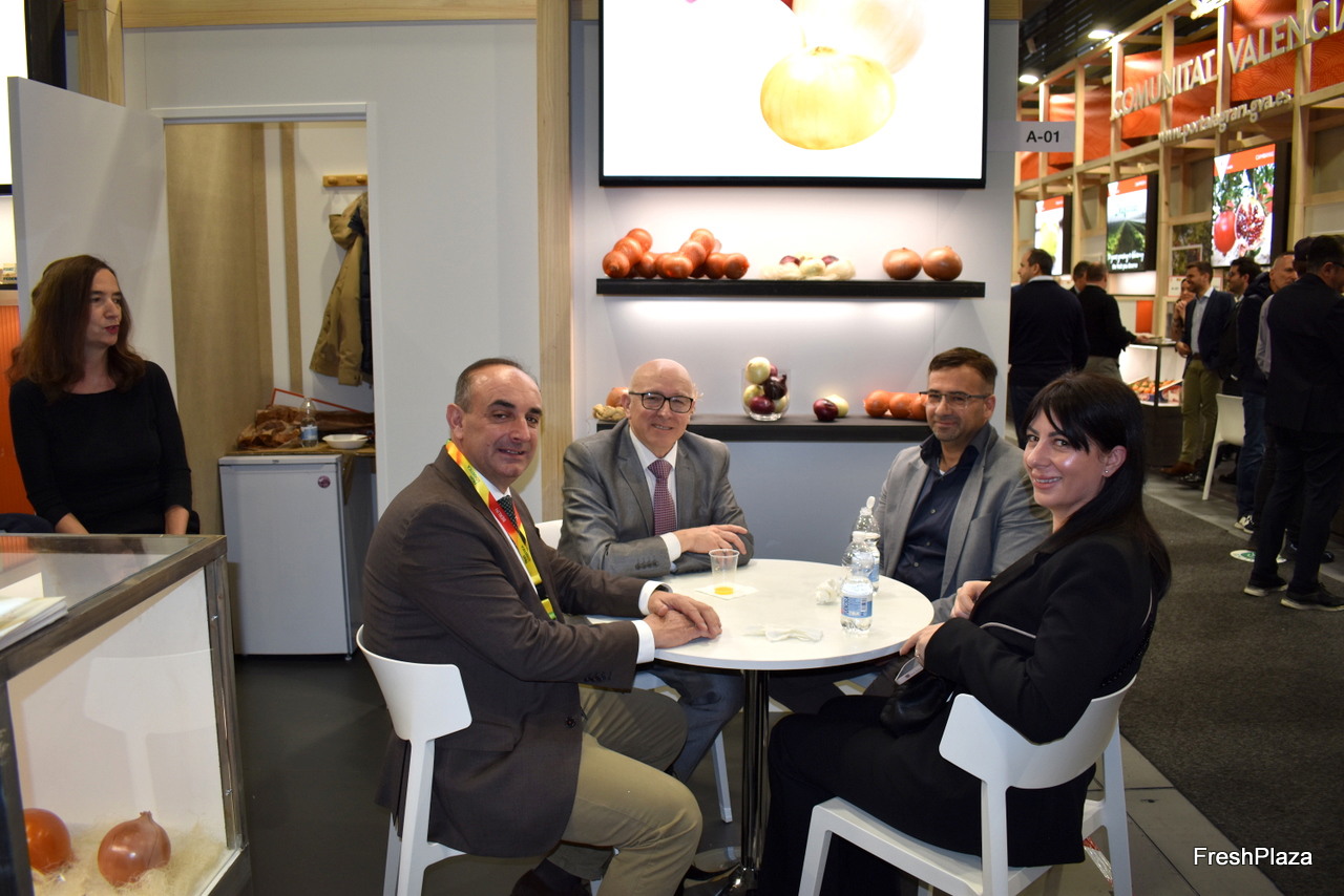 Reunión en el stand de ACEC, la Asociación de Cosecheros Españoles de Cebolla.