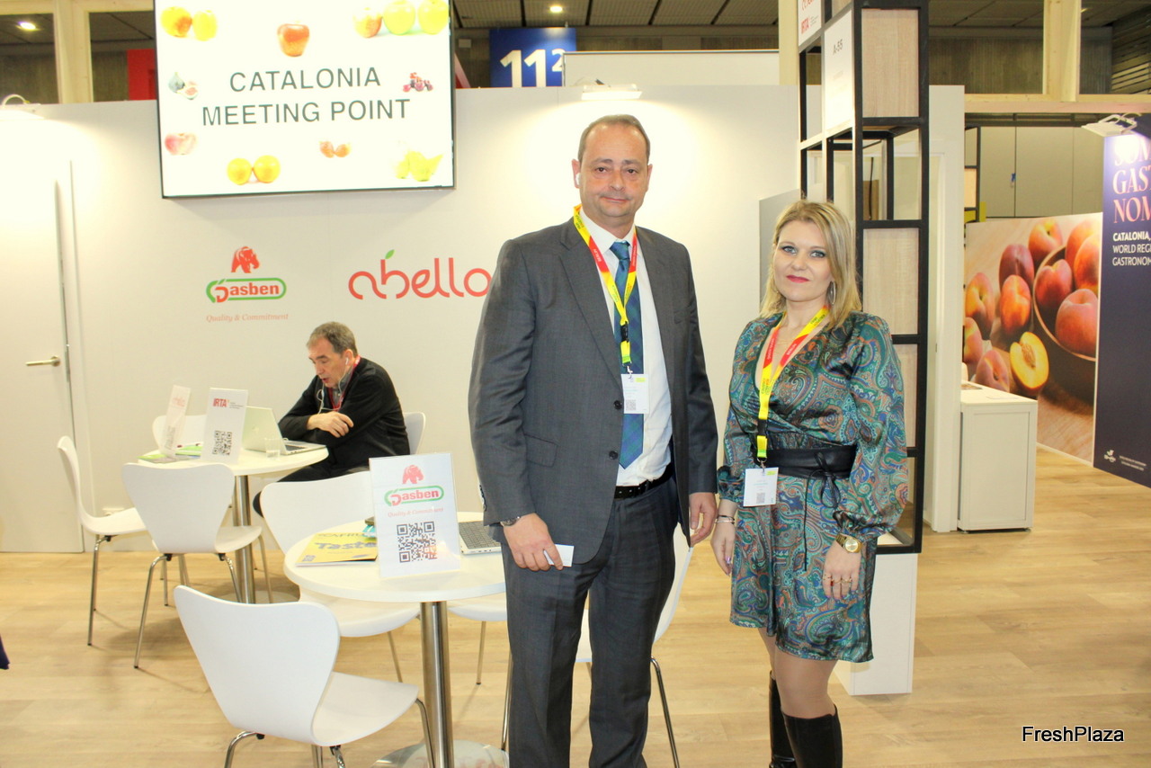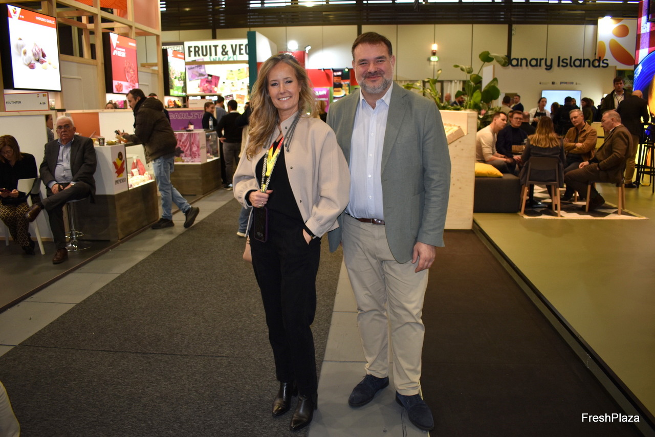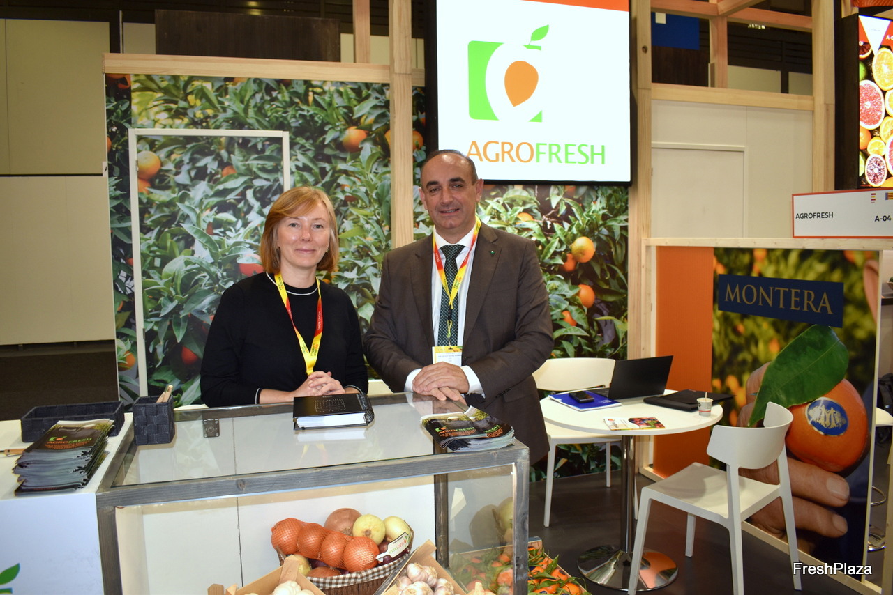 Elena Rest y José Vicente Darder en el stand de Agrofresh Export Consortium.