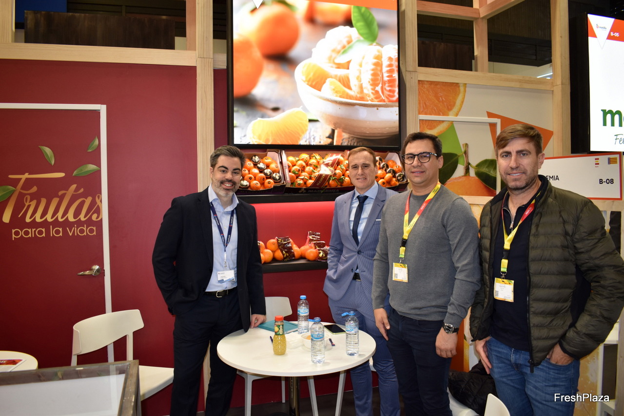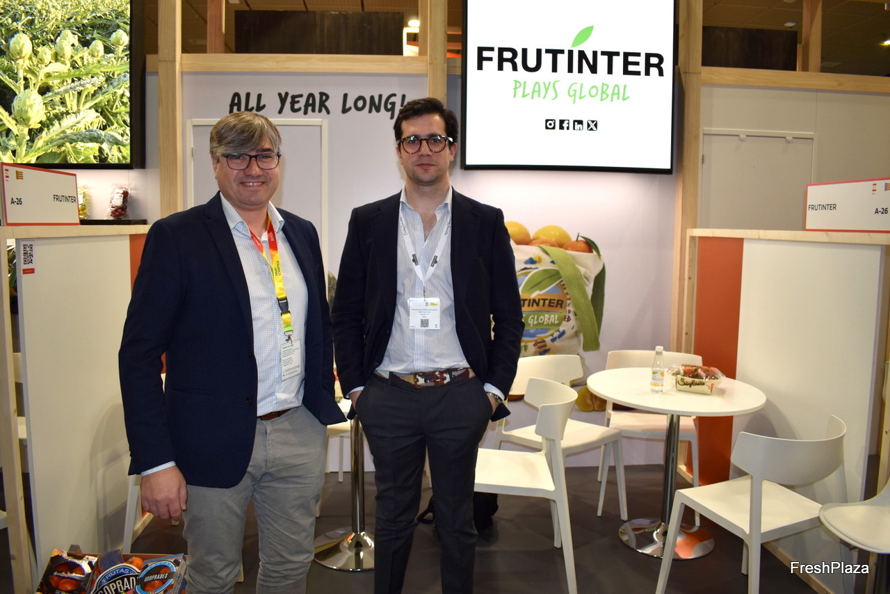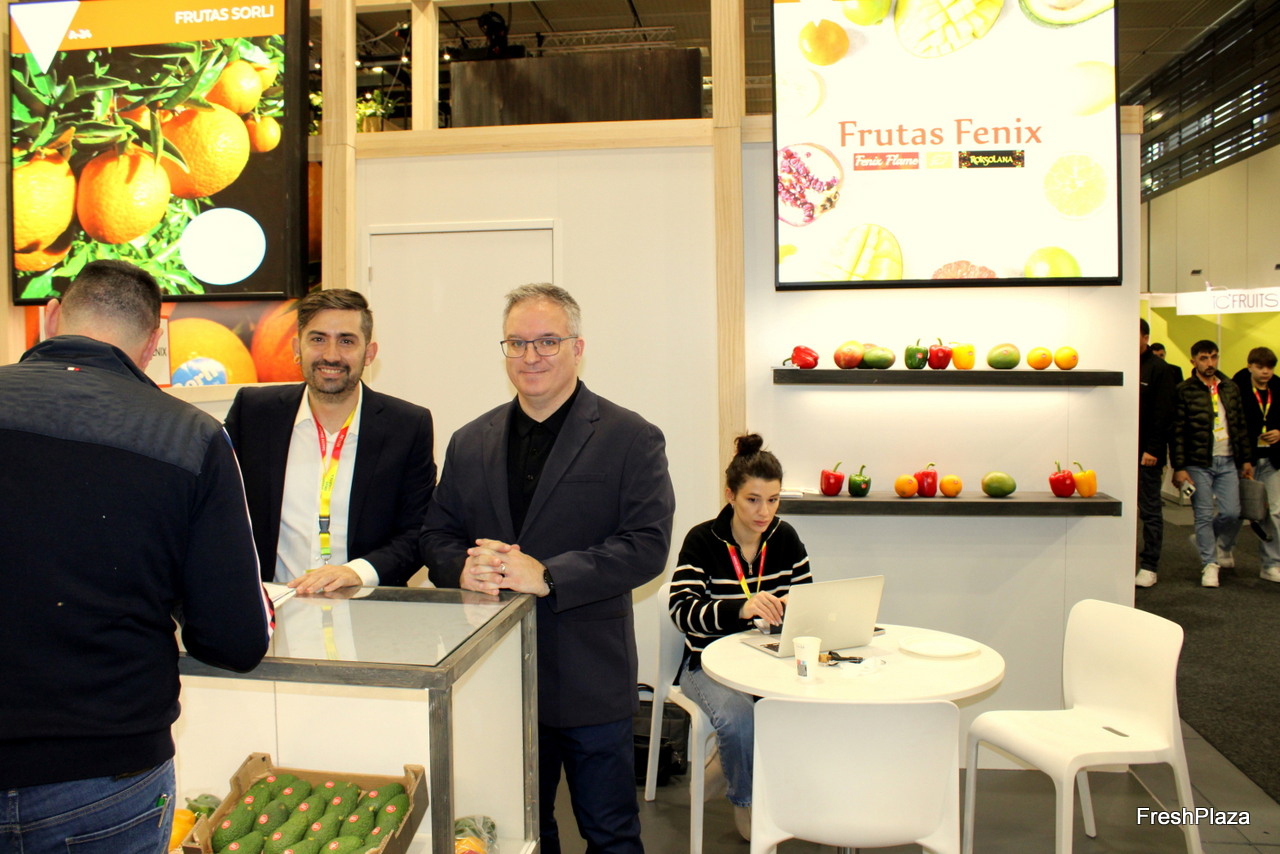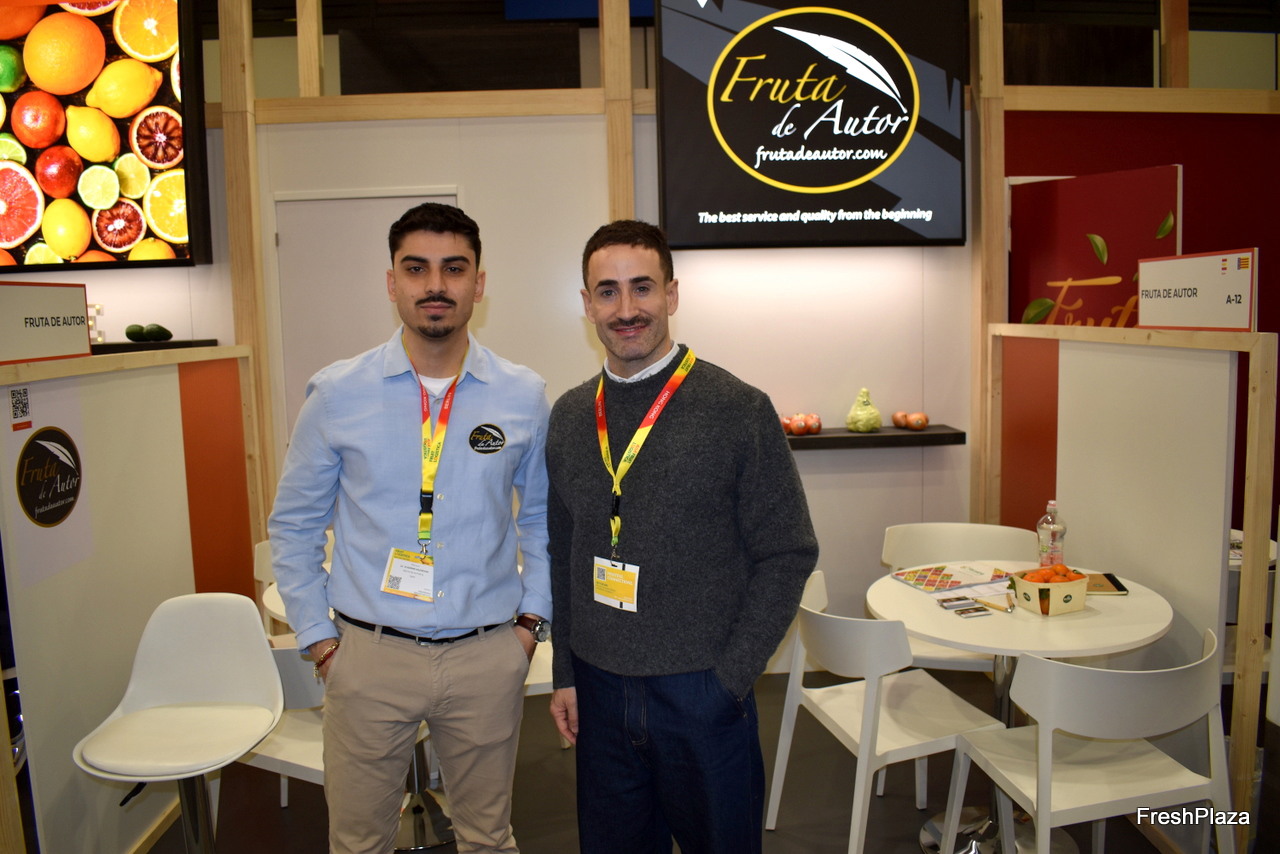 Felix Perona y Vicente Polo, de Frutas Fénix, mostraron en su stand parte de la gama de frutas y hortalizas que trabaja la empresa valenciana, entre las cuales se encontraban aguacates y naranjas chocolate de la Comunidad Valenciana