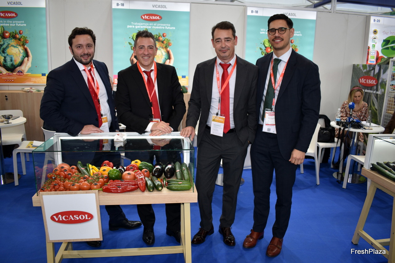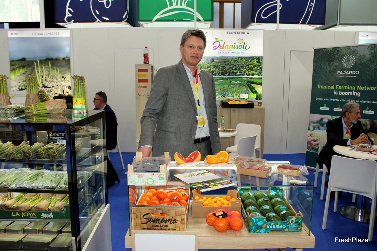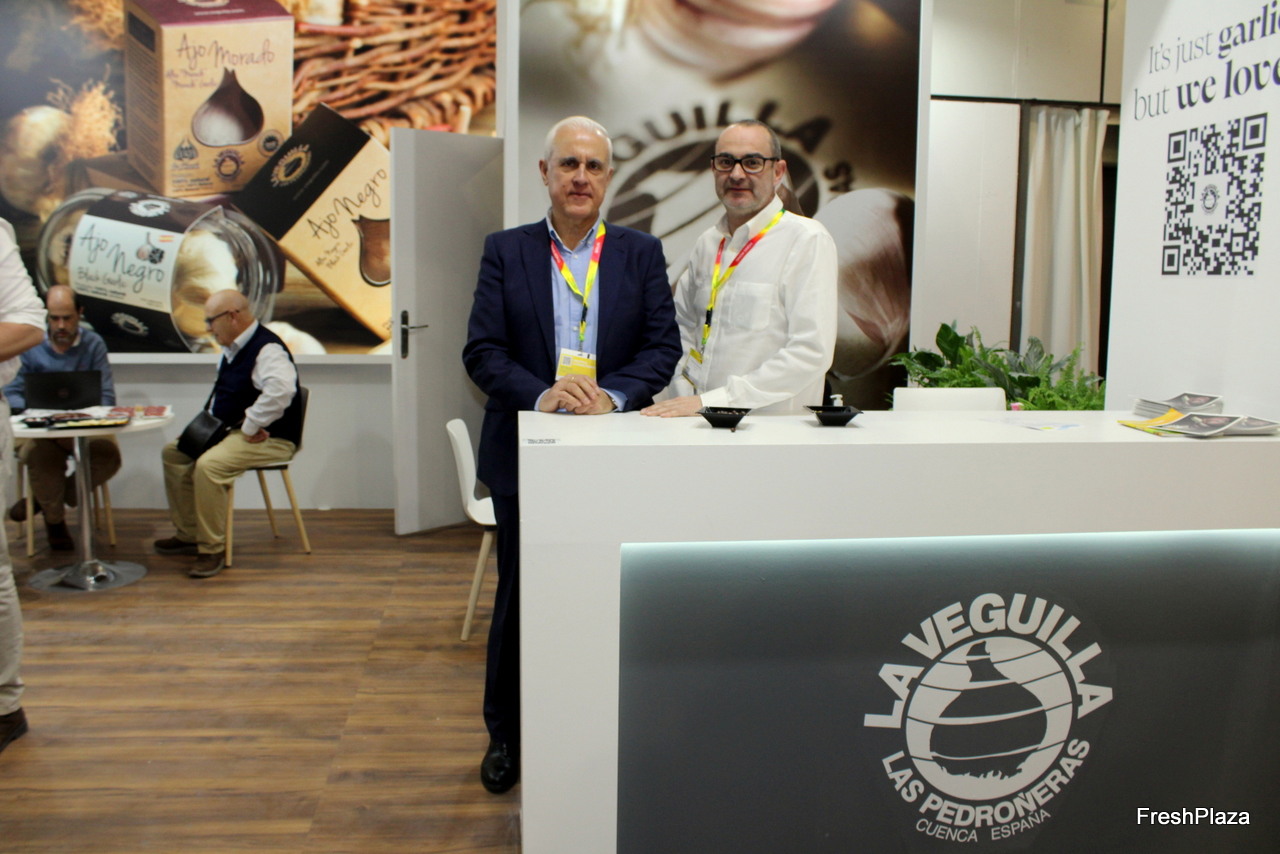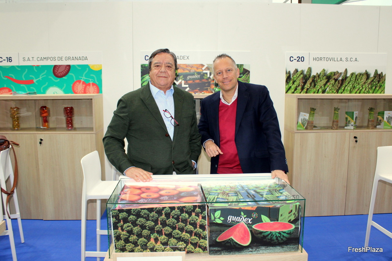 Felix Perona y Vicente Polo, de Frutas Fénix, mostraron en su stand parte de la gama de frutas y hortalizas que trabaja la empresa valenciana, entre las cuales se encontraban aguacates y naranjas chocolate de la Comunidad Valenciana