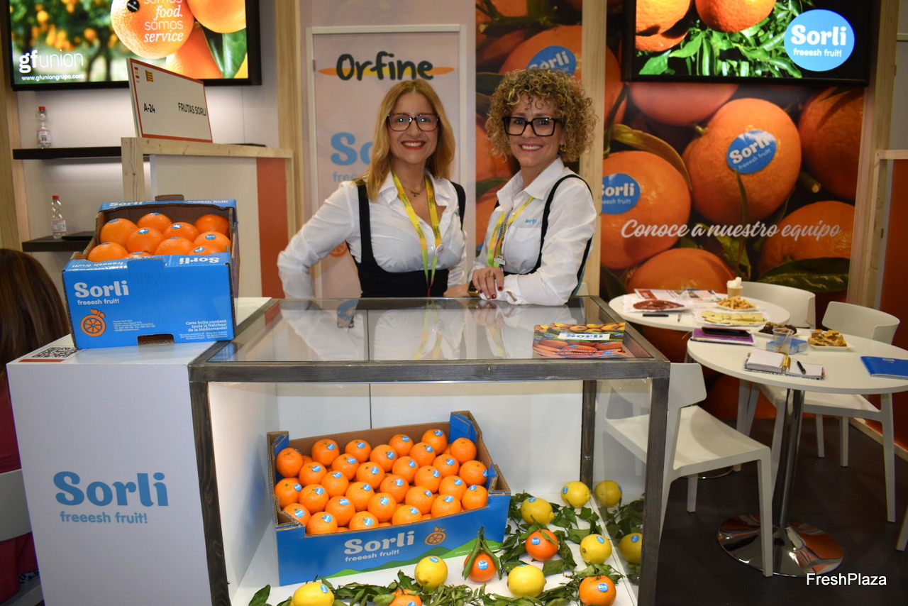 Ana y Silvana Sorlí, en el stand de Sorlí, empresa productora de cítricos de Alcalá de Xivert, Castellón.