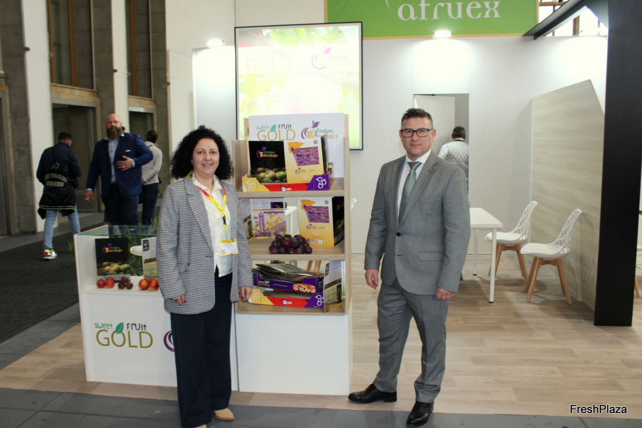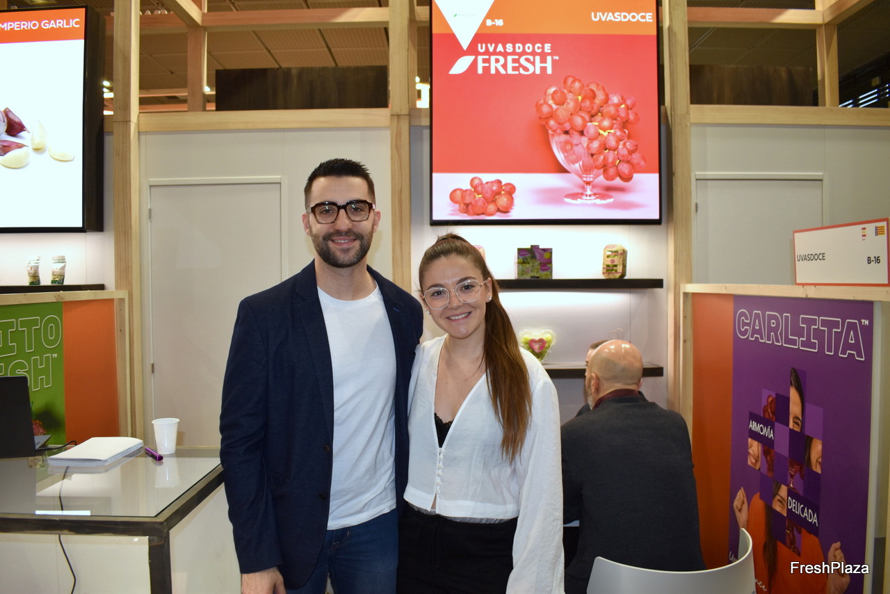 Daniel Sala y Mª José Gallego, en el stand de UVASDOCE FRESH.