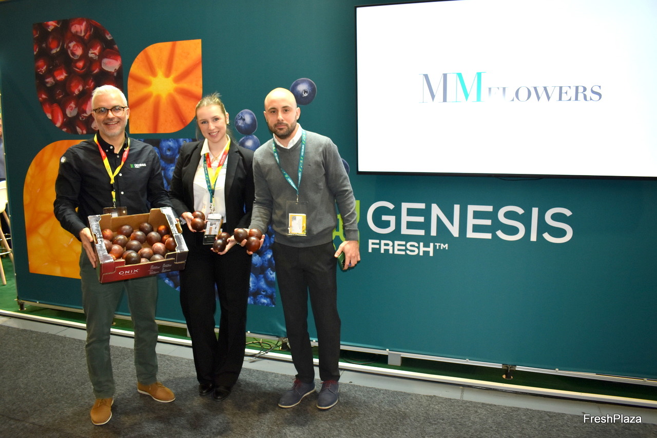 Aitana Marroquí y Juan Marroquí, de Marfruit, junto a Enzo Garnero, de Aurum Fruit